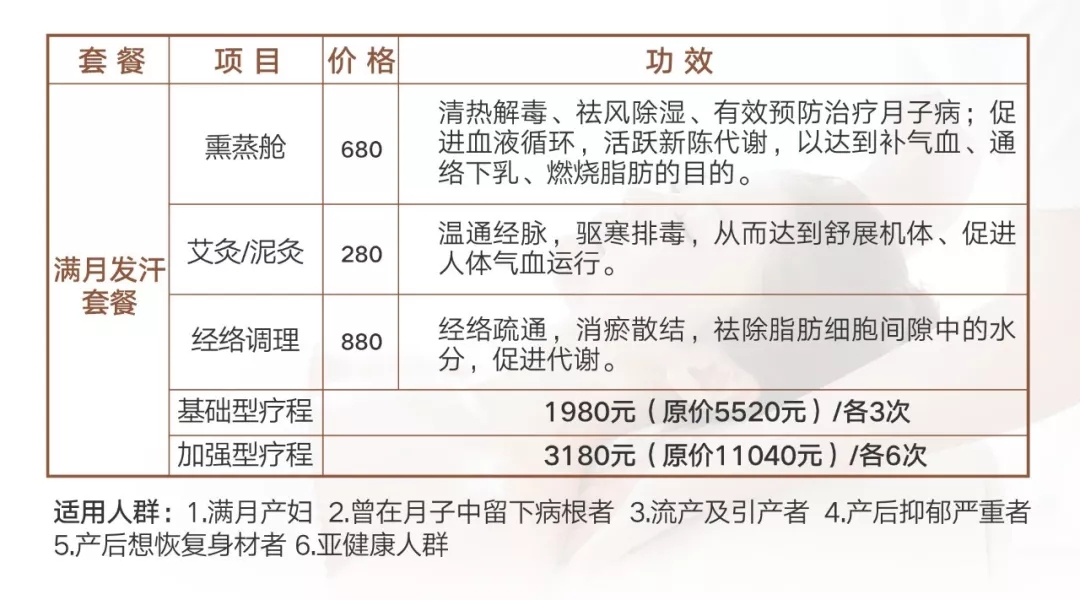 月子病,给广大妈妈们带来了难以治愈的病痛,妈妈们饱受折磨,仿佛落入了黑暗幽深的老井,找不到出路。满月发汗就像是一盏专注驱除月子病阴影的“聚光灯”, 能够及时预防及有效调理月子病,它的出现为妈妈们带来了光亮。满月发汗是传承中医学理念的“满月发汗”,来源于中医学中的“发汗法”,通过产妇发汗,将杀死的细菌病毒和体内储存的寒气彻底排出,强憾的效果让人惊诧不已。